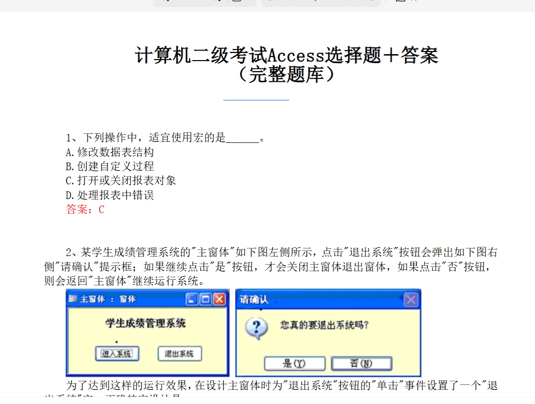 计算机二级考试Access选择题+答案(完整题库) 栏目:学习资料 作者:admin888 时间:2025-12-19 23:32:25 需要考试的小伙伴,抓紧转存。每年考的几乎都是以前的原题,不要错过了下载链接:https://pan.quark.cn/s/675440deb2f1